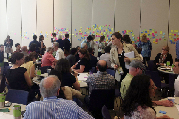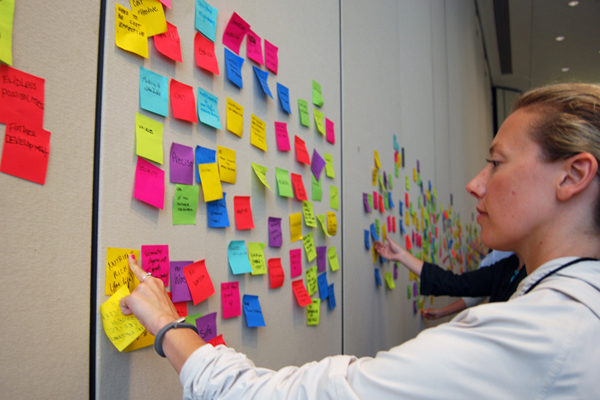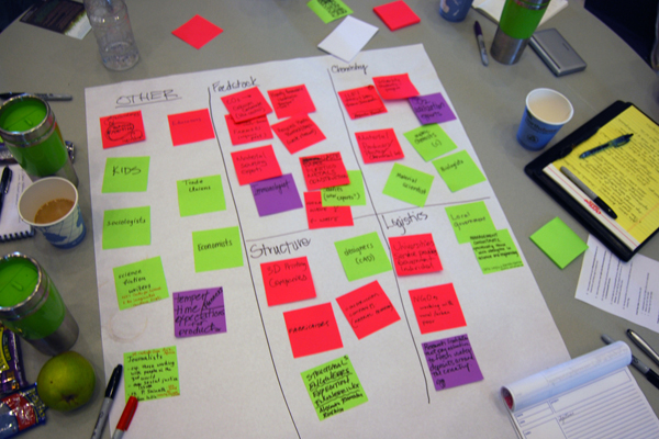 そして、このネットワークを今後どう発展させるかが初日の大きな論点となりました。中でも焦点は、データベース Ask Nature 2.0 の構築です。Biomimicry 3.8 は2008年、バイオミミクリーに関するアイディアや情報、技術・商品等を検索できるサイト Ask Natureを構築しました。誰でも無料で数千の事例を閲覧できます。しかしその内容は情報提供という側面が強く、実用化に結びつけるという点において弱い部分がありました。バージョン2.0では実践につながるデータベースを目指していきます。世界各国のツールやプログラムを公開・共有し、多様なプレイヤー(大学、企業、自治体、NPO等)と多様な分野(生物学、工学、経済、教育、芸術等)がアイディアと実践を組み合わせて協働できるようなオンラインプラットフォームについて議論しました。